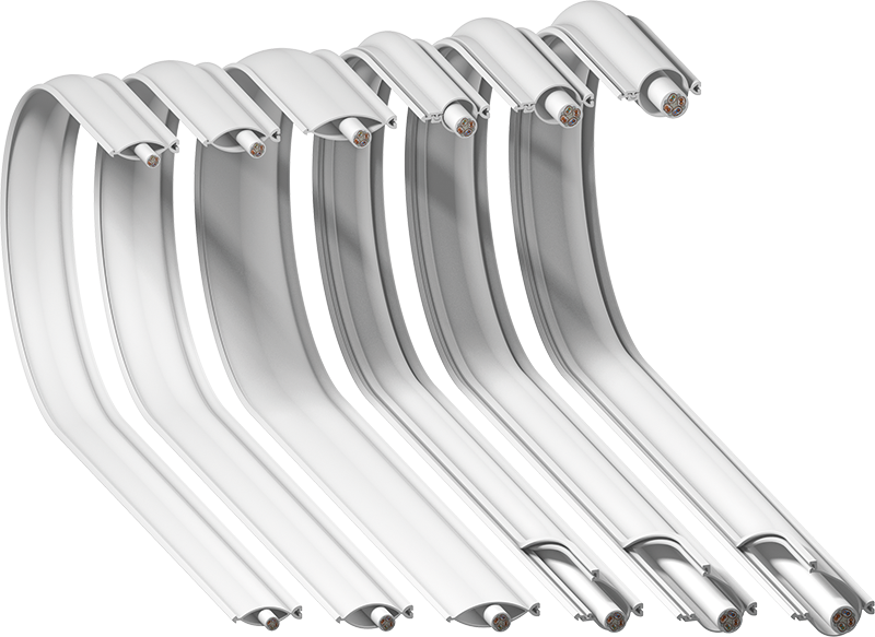 これまで、e-skin flatは非開閉式2サイズ(内高さ12、15mm)、開閉式1サイズ(内高さ12mm)の3種類でしたが、精密機器製造装置内での使用を見込み、従来よりも細いサイズを中心に6種類へ拡充させました。従来もっとも細いサイズは内高さ12mmでしたが、今回10mmのe-skin flatをラインアップに加えています。また、内高さ15mmのサイズに開閉式を追加しました。種類が増えたことにより、設計のコンパクト化や、より多くの装置へのe-skin flat使用が可能となります。