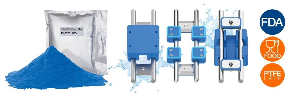 包装機械の摺動部分など、さまざまな用途でご好評いただいている食品業界向け粉状コーティング材に、新しくPTFEフリーの『イグリデュールIC-05PF』が登場しました。PTFEを使用したコーティング材からの置き換えにより、将来のPFAS規制の影響を受けることなく、高い摺動性・耐摩耗性を叶えることが可能です。また、お求めやすい価格のため、コストを削減できるケースがあります。