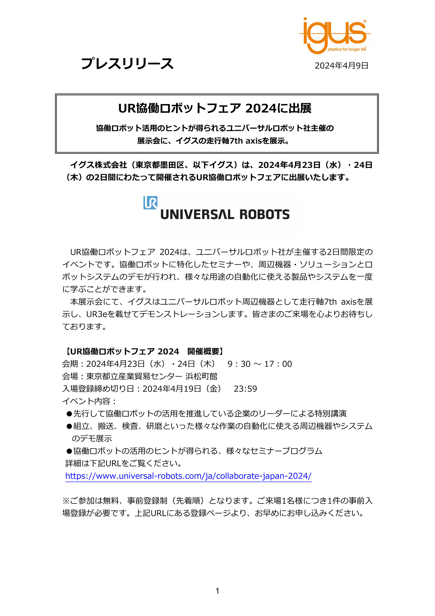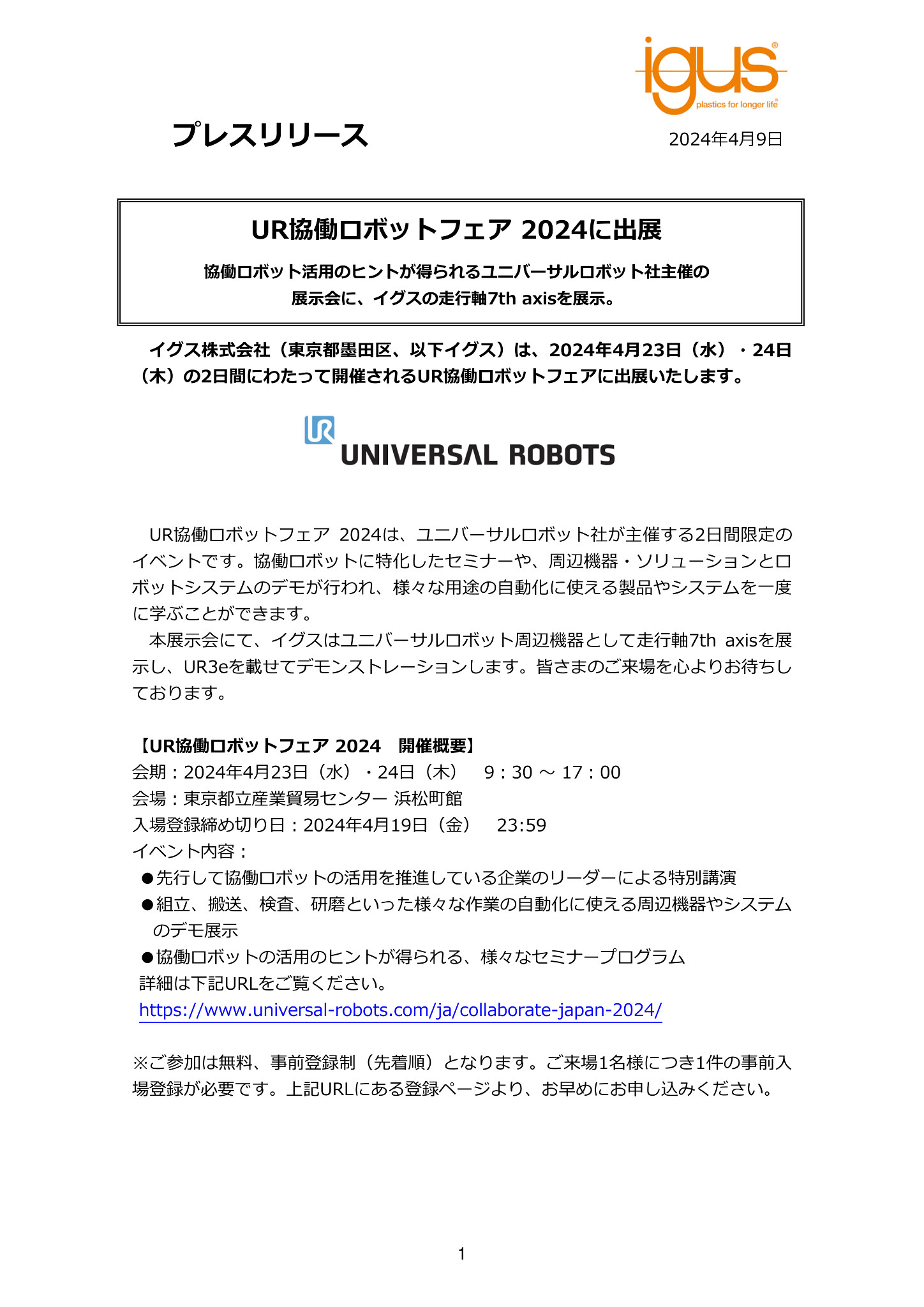Filename: [イグス] UR協働ロボットフェア2024 出展のお知らせ.pdf